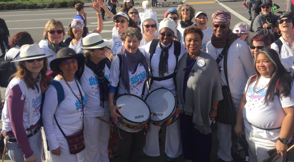 Sistah Boom dancers, 1980sAt Oakland Women’s March with Rep Barbara LeeDemonstration at ICE detention centerOnstage, 1987 March on Washington for Lesbian and Gay RightsOakland Women’s March 2017